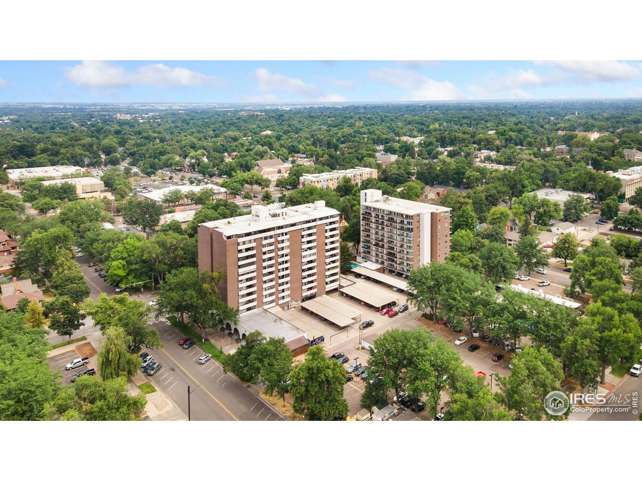 Rare high-rise living in the heart of Fort Collins! Don't miss this incredible opportunity to own a 10th-floor end unit in the south building of Park Lane Towers, one of downtown's most iconic buildings. Whether you're drawn to vibrant city energy or peaceful sky-high living, this spot blends both into one unforgettable address. Enjoy unobstructed views of Longs Peak, as well as a wealth of resort-style amenities including indoor and outdoor pools, a hot tub, sauna, fitness center, and more. The open layout makes the most of every square foot, with large windows that let the light pour in. The 1-bedroom, 1-bath design includes a newly updated walk-in shower with decorative tiling, plus a spacious living area that connects seamlessly to a full-length balcony. You'll also love the refreshed kitchen equipped with stainless steel appliances, including a brand-new range and dishwasher. The HOA covers most utilities, internet, and trash services, and provides space for two cars in the covered parking area. Two on-site guest suites are also available for rent, making it easy to host visiting friends or family. Located just one block from the Lincoln Center and within walking distance of CSU and the vibrant Old Town, this condo places you in the center of arts, history, outdoor adventure, craft brews, and seasonal cuisines. For those interested in investment opportunities, the unit offers great potential for passive income with rentals allowed for periods as short as three months. Experience the freedom of low-maintenance living and effortless accessibility in a home that truly embodies a lock-and-leave lifestyle!